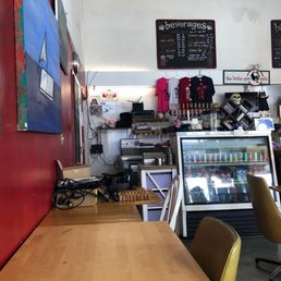Loved the artsy, cozy ambience from the eye-catching artwork on the walls to the welcoming workers. Perfect place to grab a coffee and get some work done! Sandwiches and bagels were warm and toasty.. yum!
